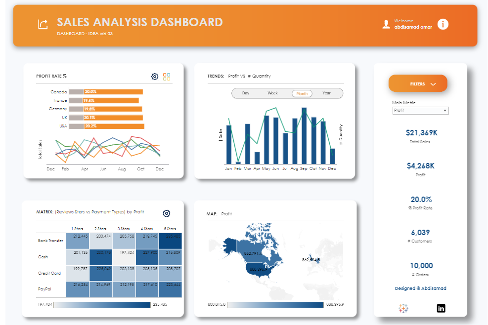 Data exploration sales analysis in Power Bi dashboard.